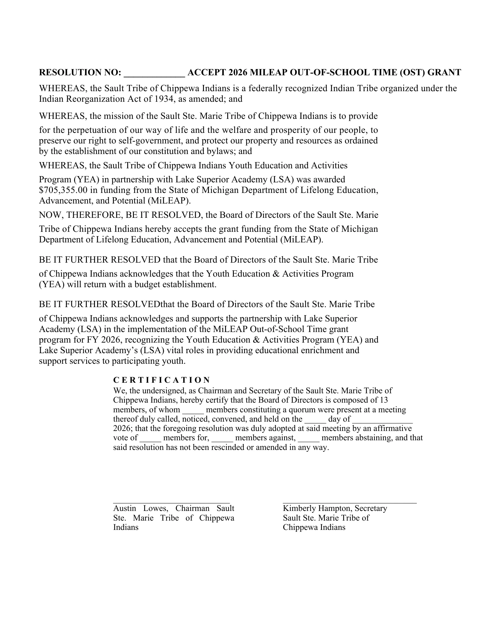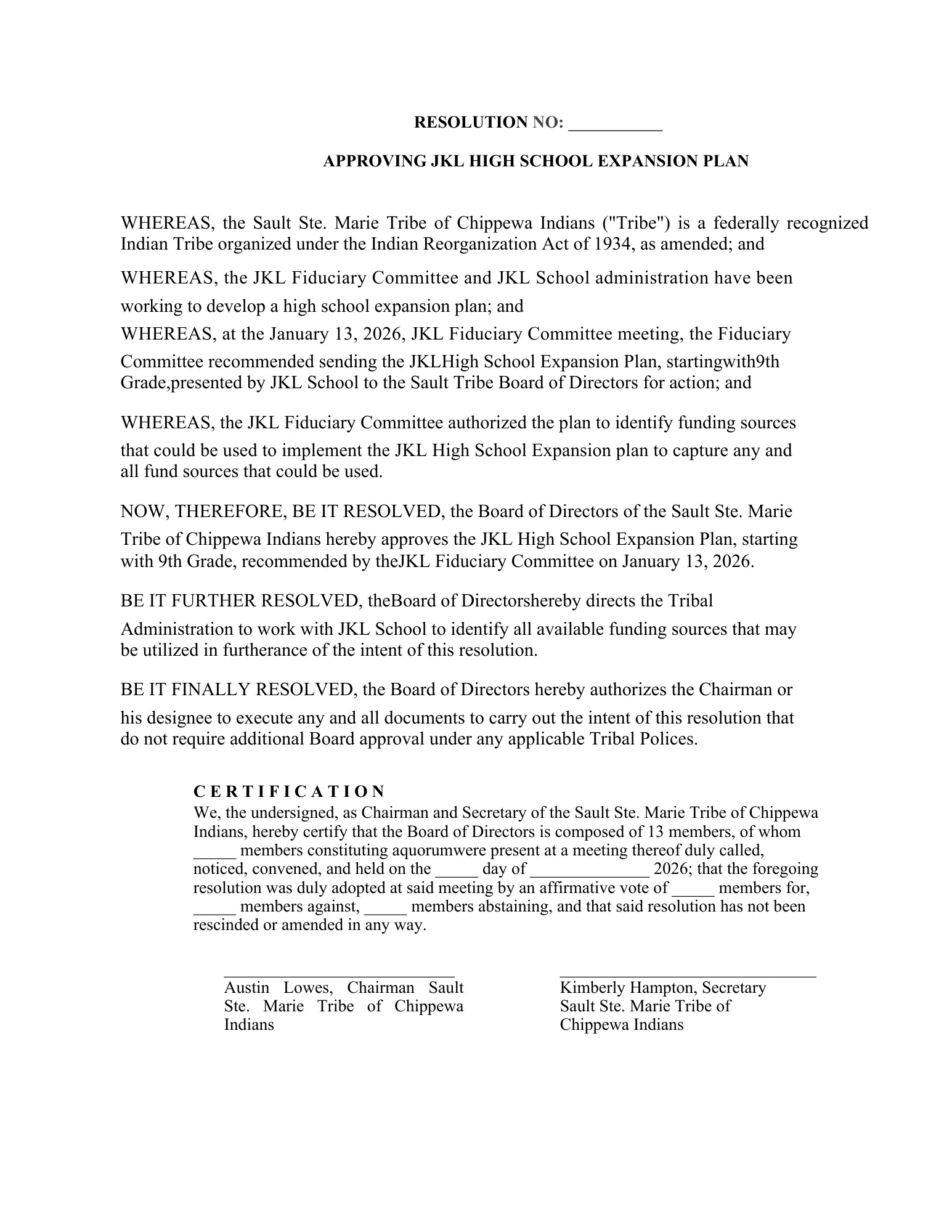 In part as a result of the request from Parents and Students JKL Bahweting Anishnabe submitted an expansion plan to the Tribal Board to add 9th grade in the 2026-2027 School year. The resolution was approved after the tribal chairman voted to break the tie vote.